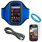 "Blue Durable Neoprene Exercise Sports Workout Armband with Adjustable Velcro Strap for HTC T-Mobile My Touch 4G Android Smartphone + Anti Glare Clear Screen Protector + Micro USB Data Cable Cord + SumacLife TM Wisdom Courage Wristband" Description